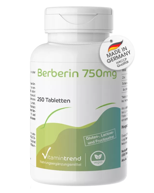 Berberin, 750 mg, høj dosis, 250 tabletter, vitamintrend (i restordre på ubestemt tid)