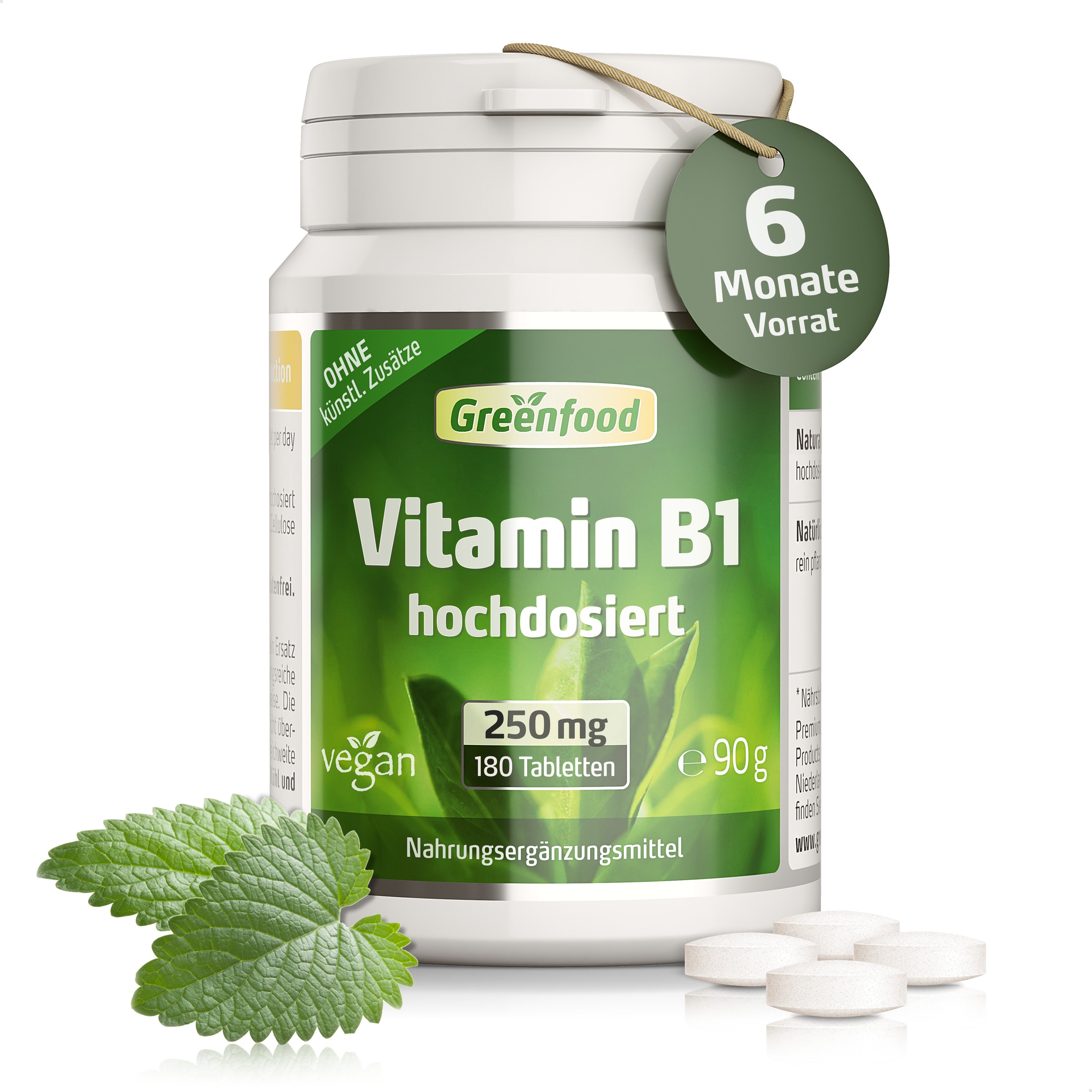 Vitamin b1, 250 mg, 180 kapsler, greenfood