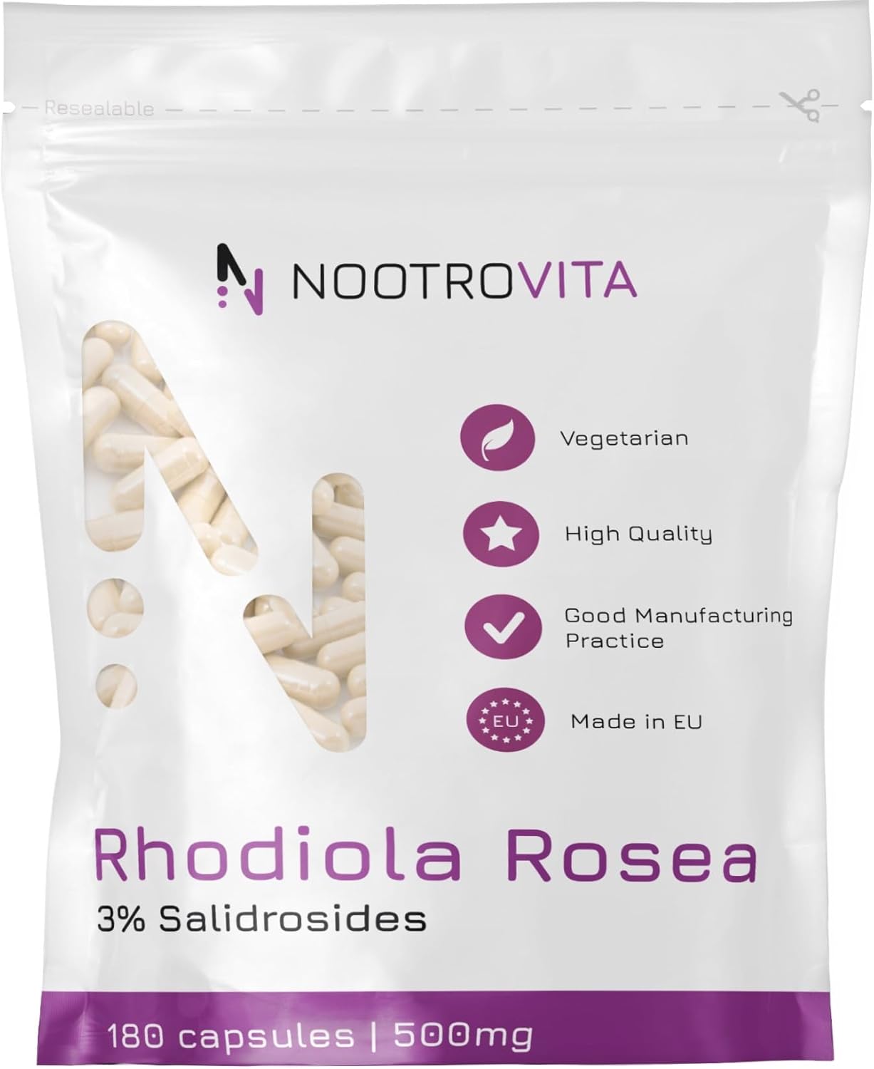 Rosenrod rhodiola rosea, 500 mg, 180 kapsler, nootrovita