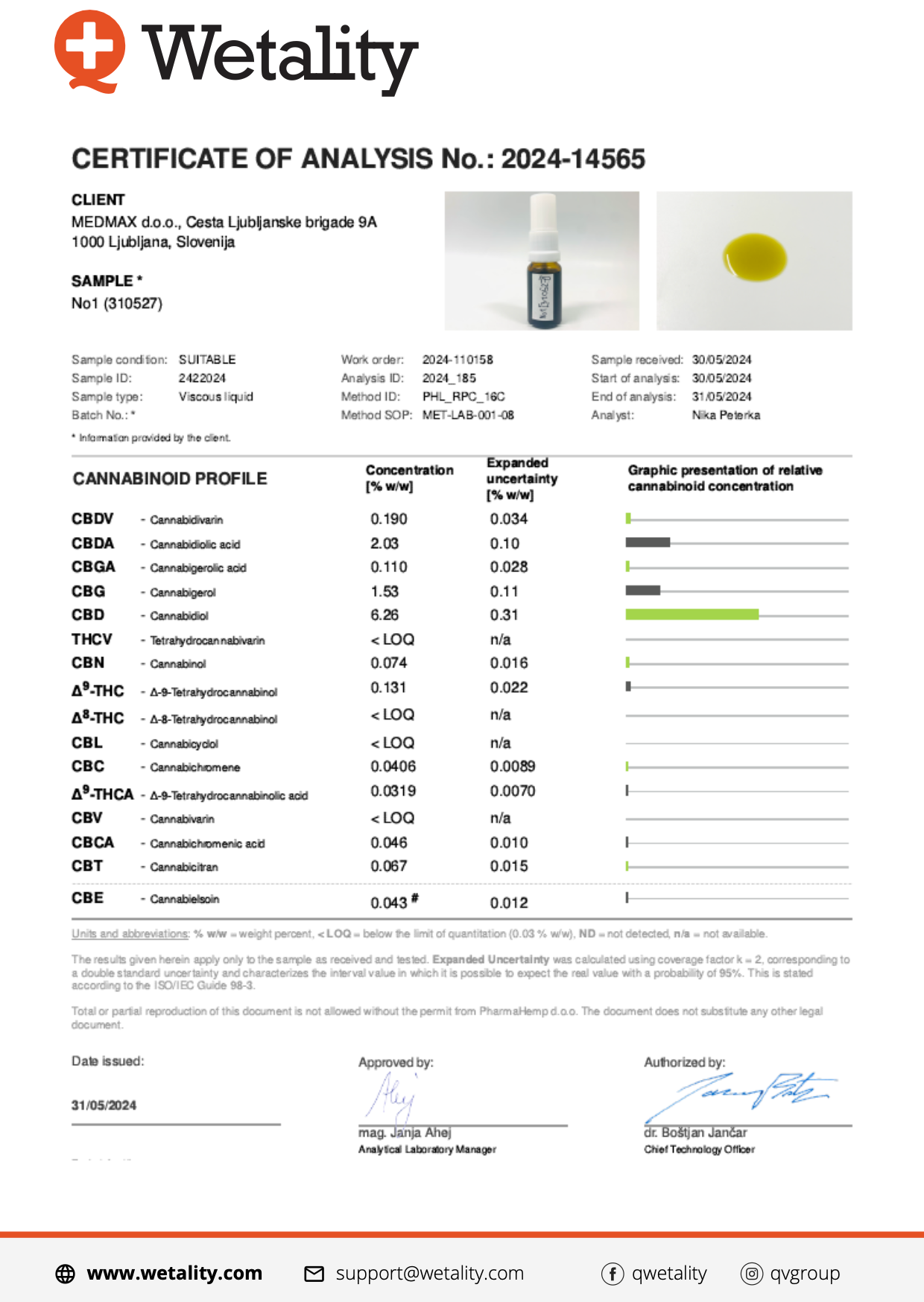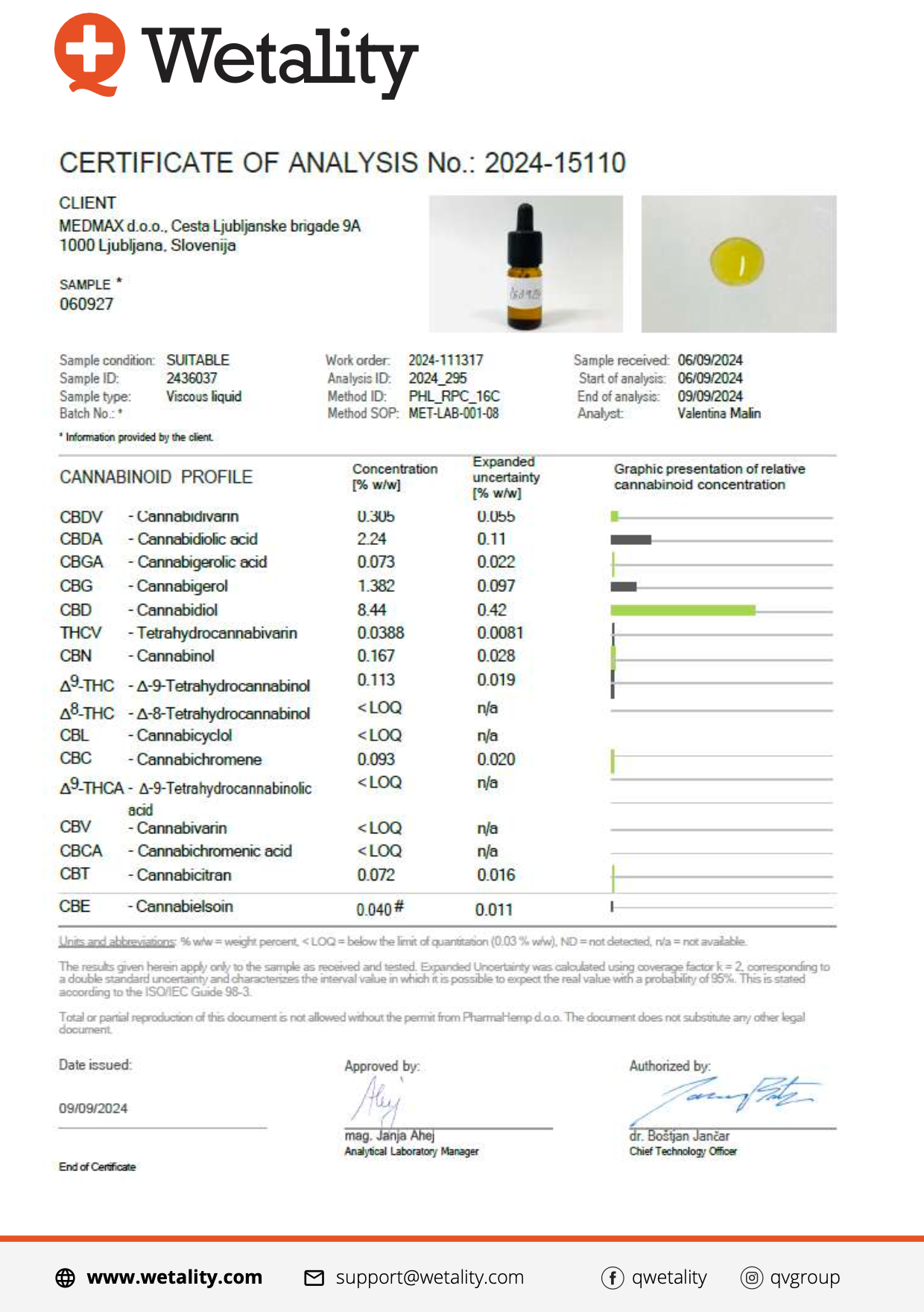 Aktive ingredienser: 500 mg, THC < 0,2%