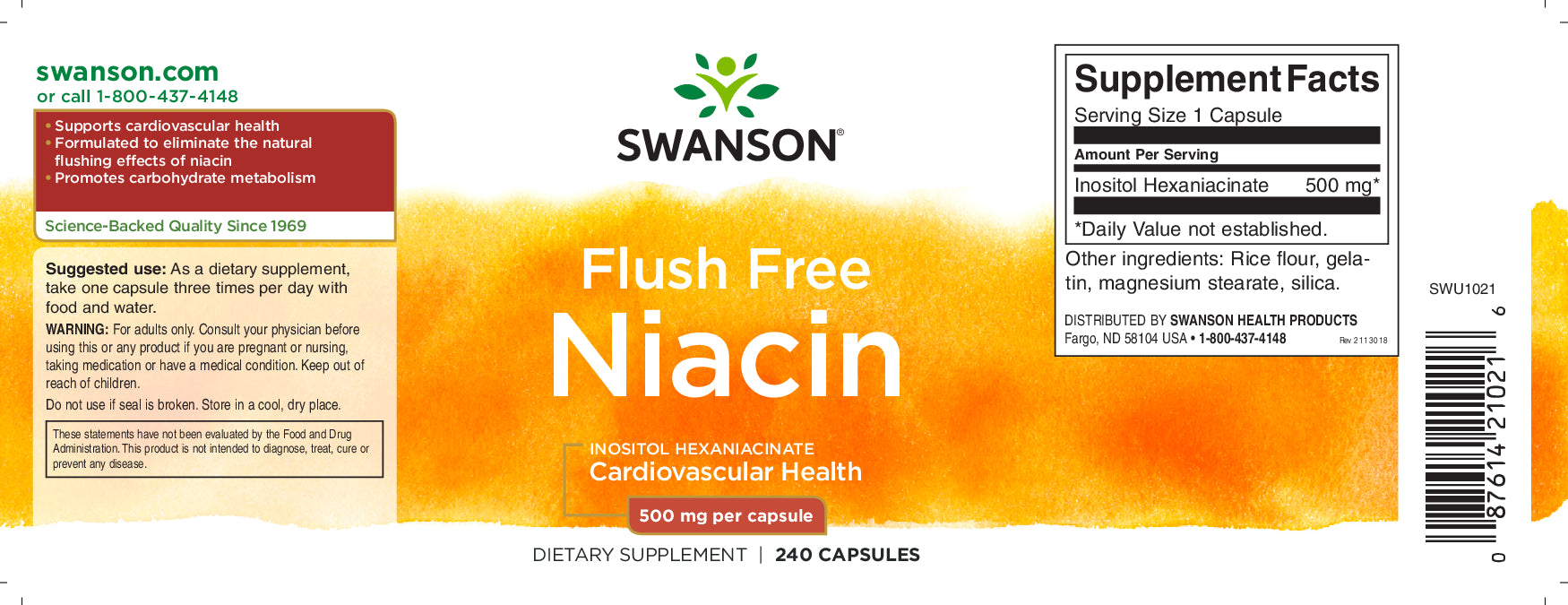 Flush Free Niacin, 500 mg, 240 kapsler, Swanson