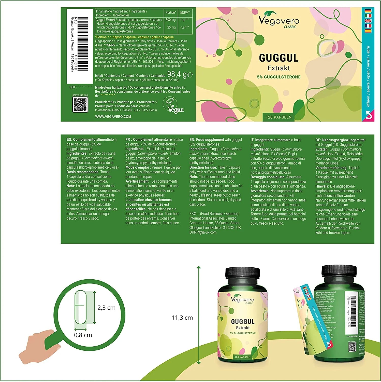 Guggulekstrakt, 500 mg (4:1, 5% guggulsteroner), 120 kapsler, Vegavero