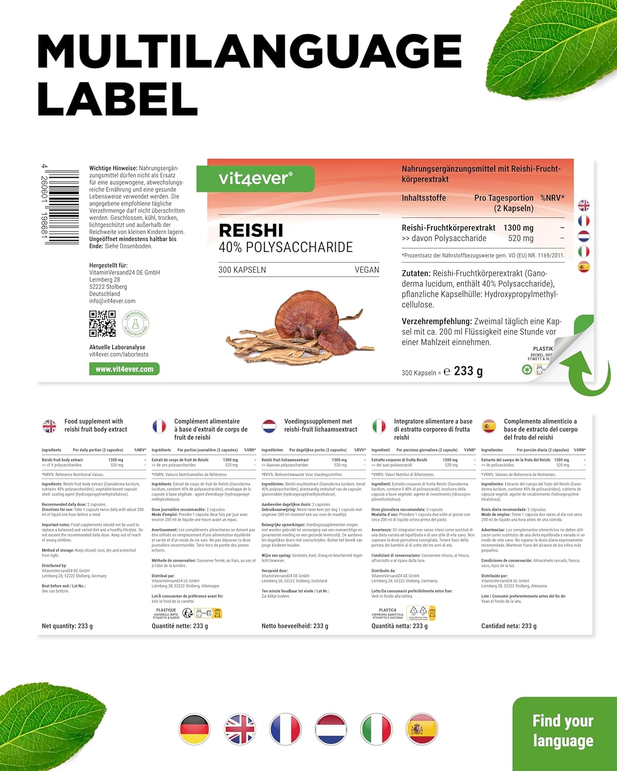 Reishi Intenso svampe-ekstrakt, 650 mg (40% polysakkarider), 180 kapsler, Vit4ever