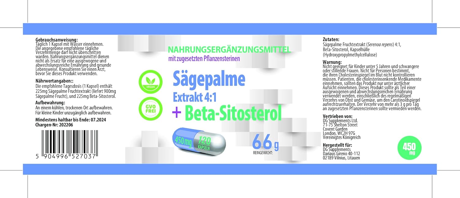 Savpalme 450 mg, vegansk, 120 kapsler, DG Supplements